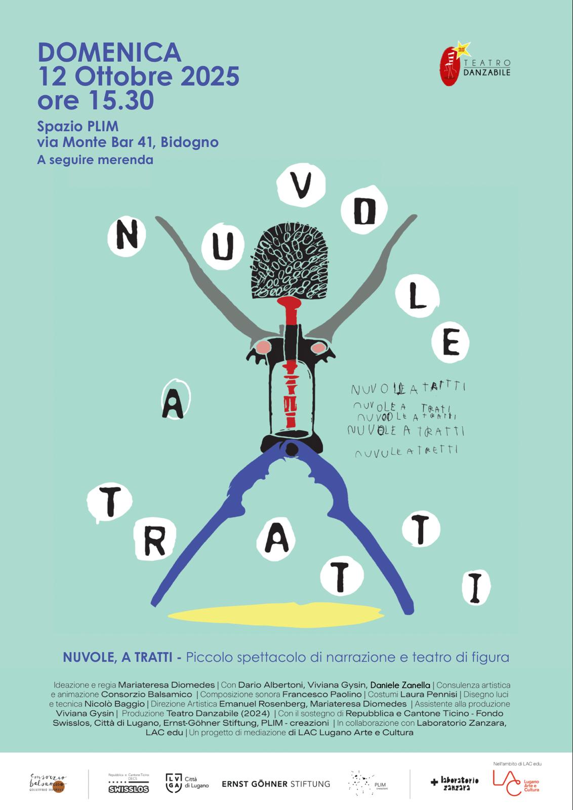 NEWS NUVOLE, A TRATTI di Teatro Danzabile piccolo spettacolo di narrazione e teatro di figura allo Spazio PLIM il 12 ottobre, 15.30h